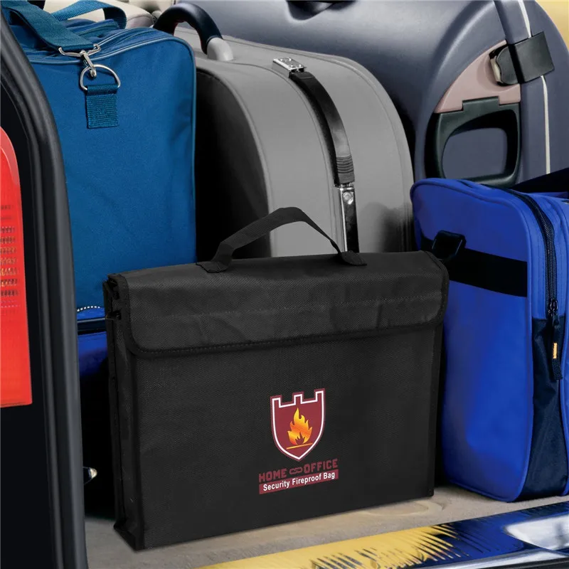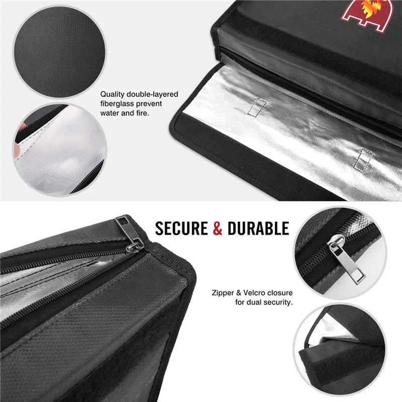 Special Offer 10pcs Large Fireproof Money & Document Bag File Holder With Handle And Shoulder Strap Waterproof For Battery Safe Storage Black Discount 38% Today!